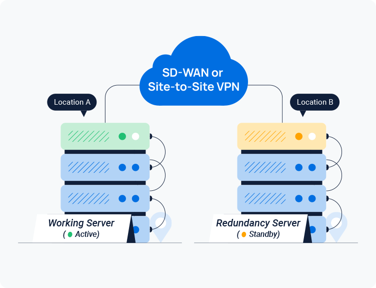 Include both local redundancy setup (Hot Standby) and geo-redundancy setup (Disaster Recovery) to cover almost all failure scenarios. It’s easy to deploy either one or a combination.
